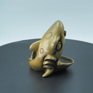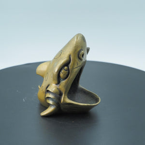 Brass Shark Open Mouth Figurine, Fish Tank Decoration and Hideout, Small Animal Ornament