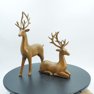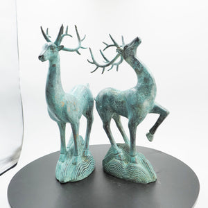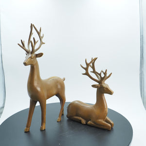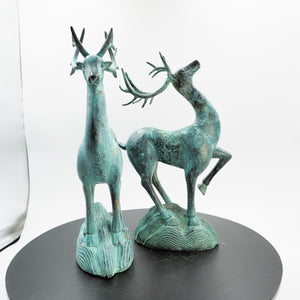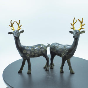 Pair of Brass Elk Figurines, Male and Female, Decorated with Blossoming Flowers