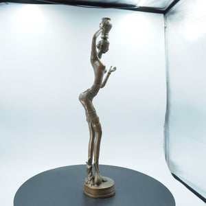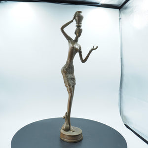 African Woman Carrying Water Pot Sculpture, Barefoot, Symbolizing Resilient Spirit