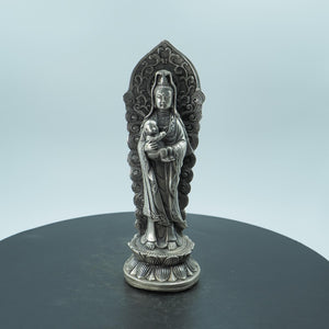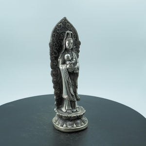 Silver-Plated Copper Guanyin Statue - Vintage Style Backlit Bodhisattva