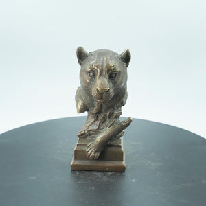 Pure Copper Female Lion Head Figurine with Base, Serious Expression