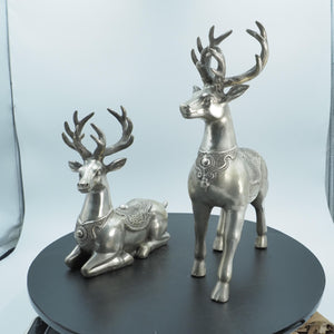 Pair of Silver Brass Spotted Deer Figurines, Symbolizing Peace, Delicately Crafted with Elegant Design