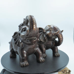 Pair of Brass Elephant Figurines, Auspicious Guardians of the Home, Symbolizing Luck and Prosperity