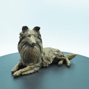 Copper Scottish Collie Dog Figurine: Detailed Hair Texture Sculpture