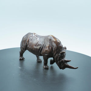 Handcrafted Copper Rhinoceros Figurine, Polished Brass Artwork