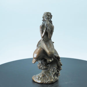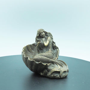 Vintage Pure Copper Shell Mermaid Figurine, Sensual 3D Nude Goddess, Aquarium Decor