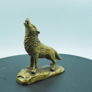 Pure Copper Golden Roaring Grey Wolf Totem Figurine, Creative Brass Wolf Ornament