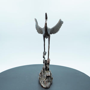 Pure Copper Dancing Crane Figurine, Mountain Cloud and Pine Theme, Finely Polished Craft