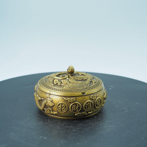 Vintage Copper Dragon Incense Burner with Pearl: Carved Storage Box